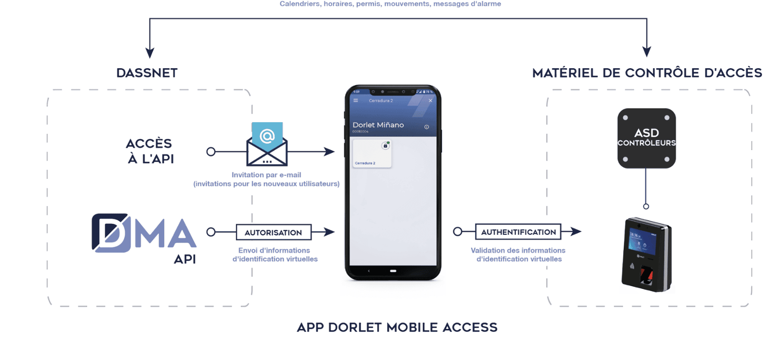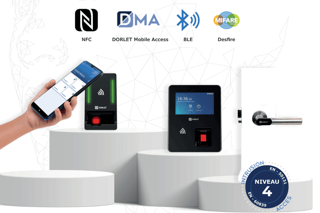Dorlet innove avec sa solution de dématérialisation des badges sur smartphone. Grâce aux technologies NFC et Bluetooth (BLE), le téléphone de l'utilisateur devient son badge sécurisé. Cette solution permet d'envoyer des clés virtuelles à distance à des visiteurs ou des prestataires, éliminant la gestion logistique lourde des badges physiques plastiques et améliorant l'expérience utilisateur dans les bâtiments modernes.