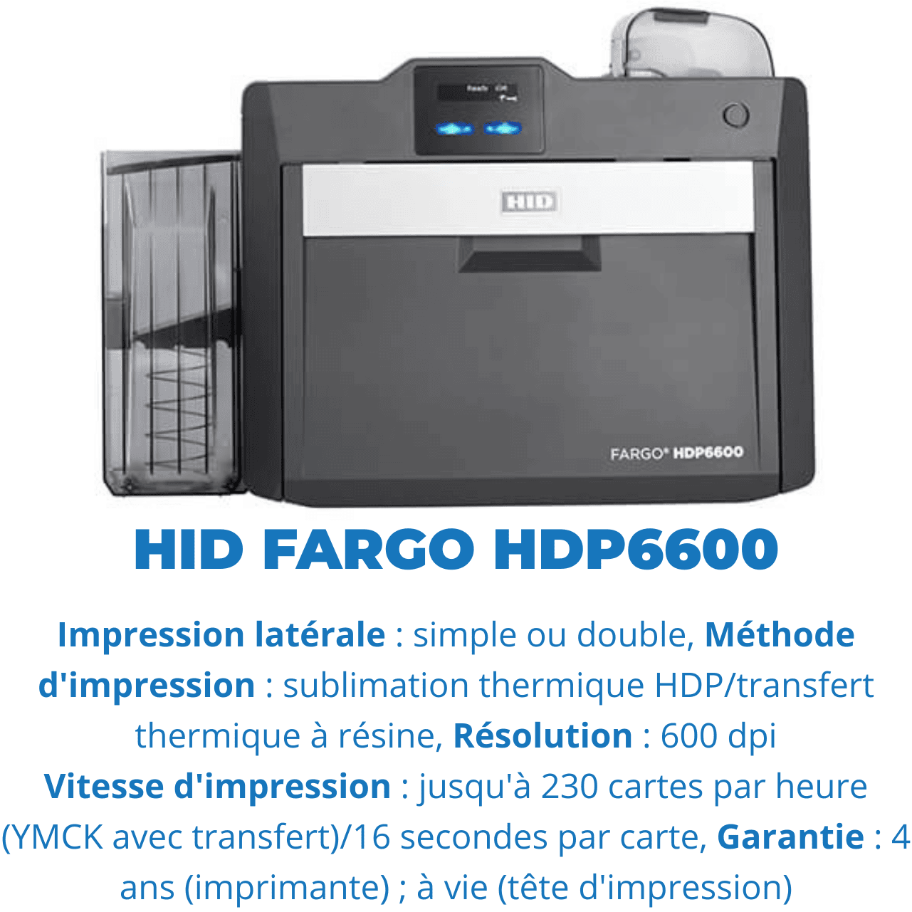 L'identité est la clé de la sécurité. Du badge visiteur temporaire à la carte d'accès technologique multiservices, HID Fargo offre la gamme la plus complète et fiable d'imprimantes et d'encodeurs. DirectPro vous permet de maîtriser l'émission de vos titres sécurisés en interne, avec une qualité d'impression professionnelle et des options de sécurité avancées (hologrammes, encodage puce).